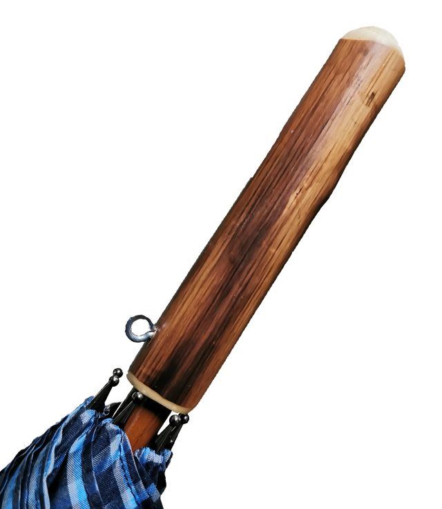 Rechts dargestellt sehen Sie die Version als Schulterschirm. Hier wurde ein naturgewachsener Kastaniengriff verwendet.