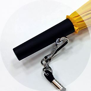 Stockschirm mit Rundhakengriff oder als Schulterschirm mit geradem Griff und Umhängekordel.